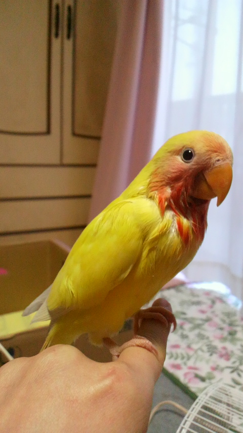 今はハナちゃんが肩に止まっています。