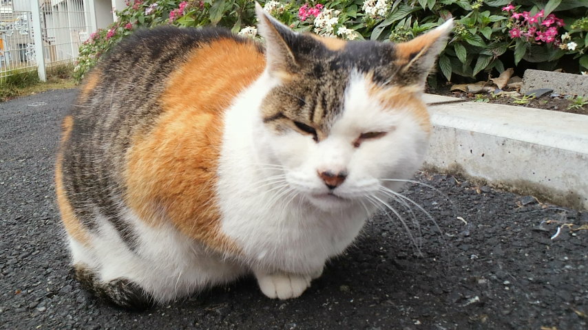 鮮やかな三毛よのう。福ましいのう。