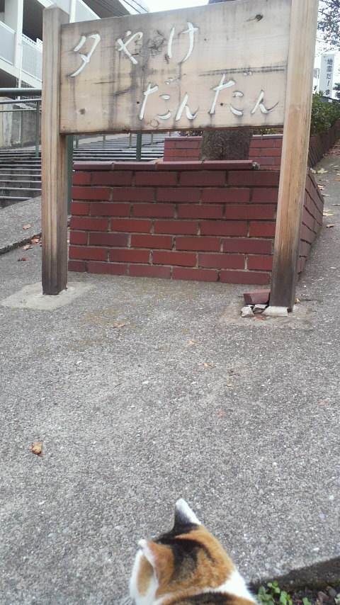 帰りの夕焼けだんだんにも、行きに見た三毛さんが居たので