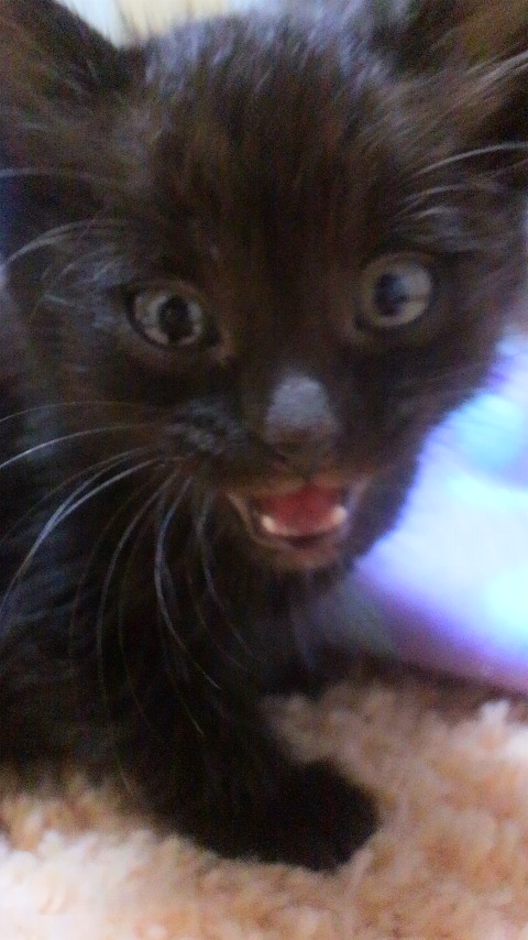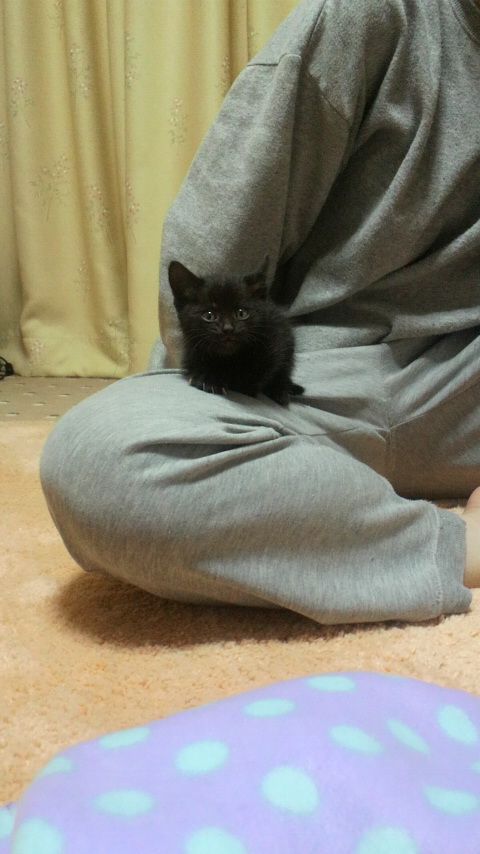 昔家で飼ってた猫も、生後一ヶ月位の、この黒ちゃんと同じ位の大きさで家に来たのですが