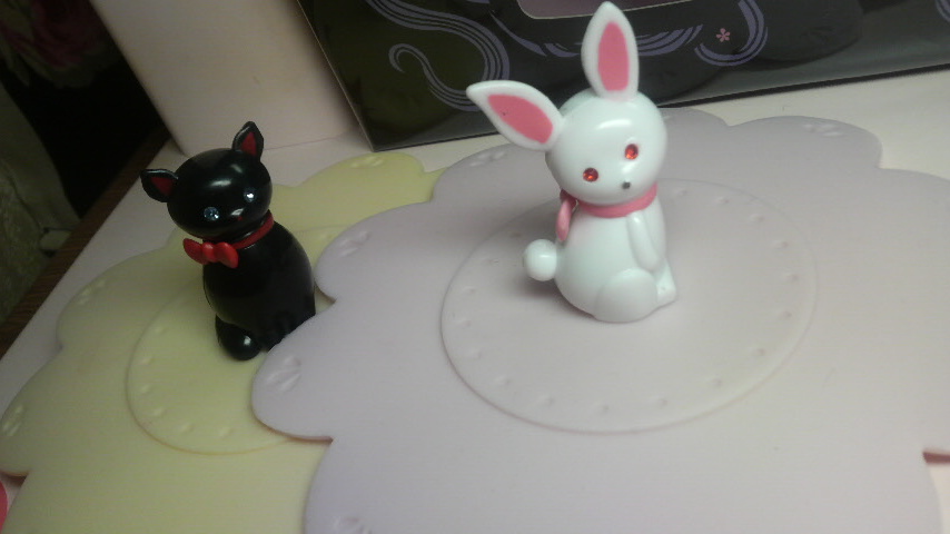ああ可愛い。黒猫と白兎が私の紅茶を守ってくれる。